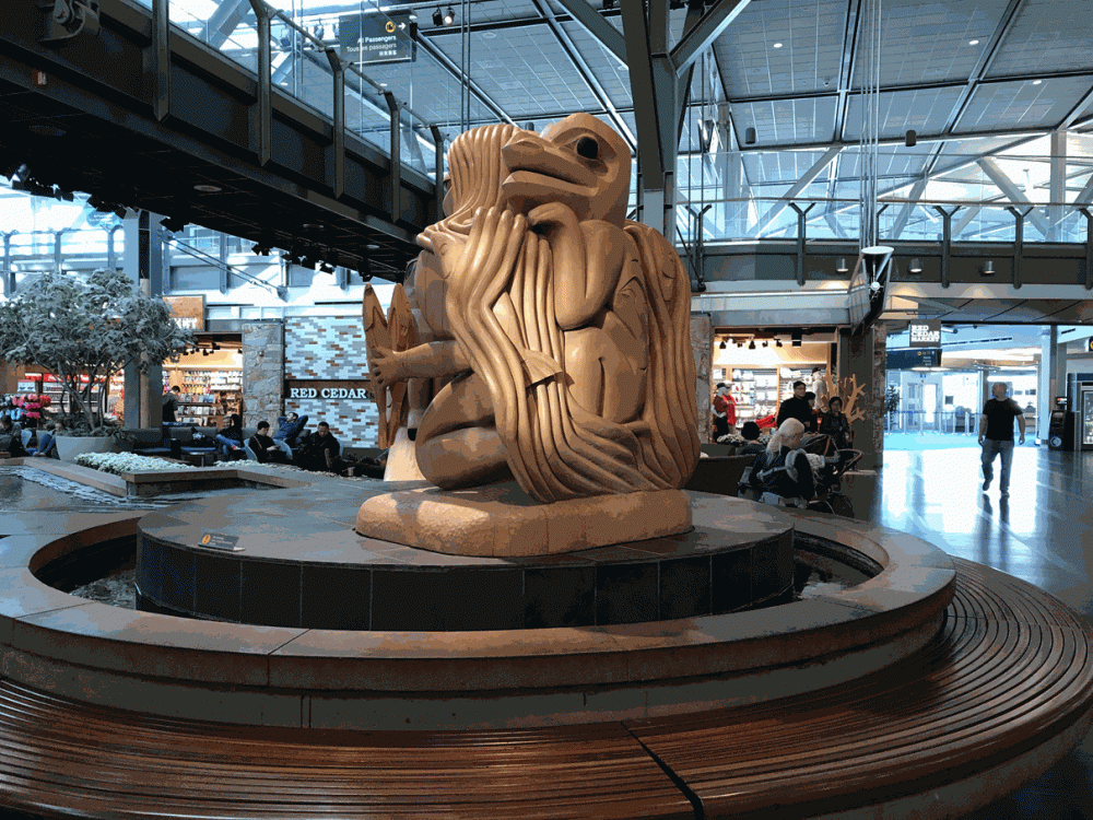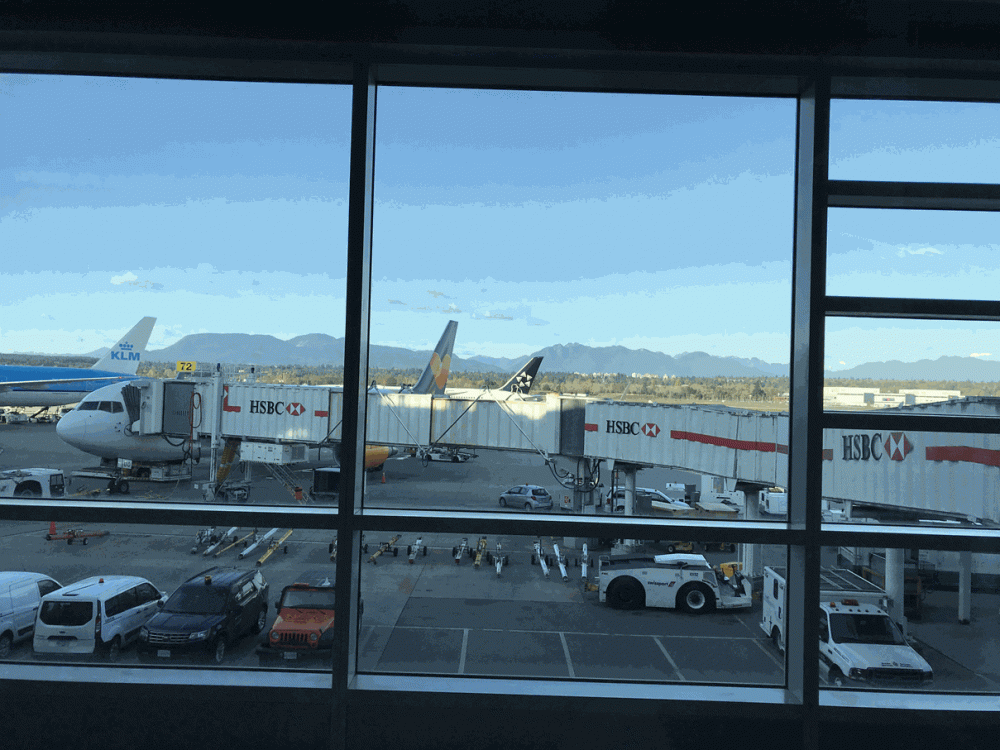 Die Maschine der Condor wartet schon am Gate B42 und wird gerade beladen. Wir starten pünktlich und genießen die Premium Sitze mit mehr Beinfreiheit! Man merkt der Besatzung jedoch an, dass die Stimmung wegen der Insolvenz sehr gedrückt ist Der Flug verläuft ruhig, und wir landen planmäßig in Vancouver. Mit dem Shuttle geht es ins Sandman Vancouver Airport, wo wir noch im Hotel etwas essen.