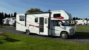 Wir stehen früh auf, weil wir hoffen, zeitig von Canadream abgeholt zu werden. Leider zerschlägt sich diese Hoffnung als wir nach dem Frühstück anrufen und erfahren, dass uns der Bus erst gegen 11 Uhr abholen wird. Gegen 12 Uhr treffen wir bei Canadream ein und erledigen die Formalitäten. Da an diesem Tag ein starker Andrang herrscht, dauert das fast 2 Stunden. Die nächste Überraschung ist die Größe des Wohnmobils: statt gebuchtem 24ft steht ein 2 Jahre altes 28ft RV mit Slide out auf dem Hof, Tachostand 78000 km. Das Fahrzeug macht jedoch bis auf kleinere Kratzer (die im Protokoll vermerkt werden) einen gepflegten Eindruck und ist sehr sauber. Auch die Aufteilung gefällt uns! Wir erhalten auf Wunsch eine zweite Steppdecke und einen kleinen Elektroofen, der uns kostenlos ausgeliehen wird. (Er ersparte uns auf der Reise eine Menge Propane)